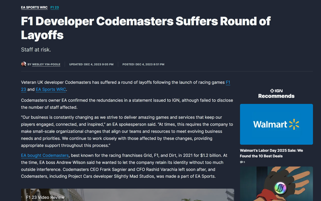 >>9760920 (OP) > Одни и те же разработчики До до до конечно. С момента покупки еа у них состав полностью мог раза три поменяться как нехуй, от тех людей что делали дырт 2 только вывеска осталась. На их место взяли макак подешевле, вот тебе и результат.