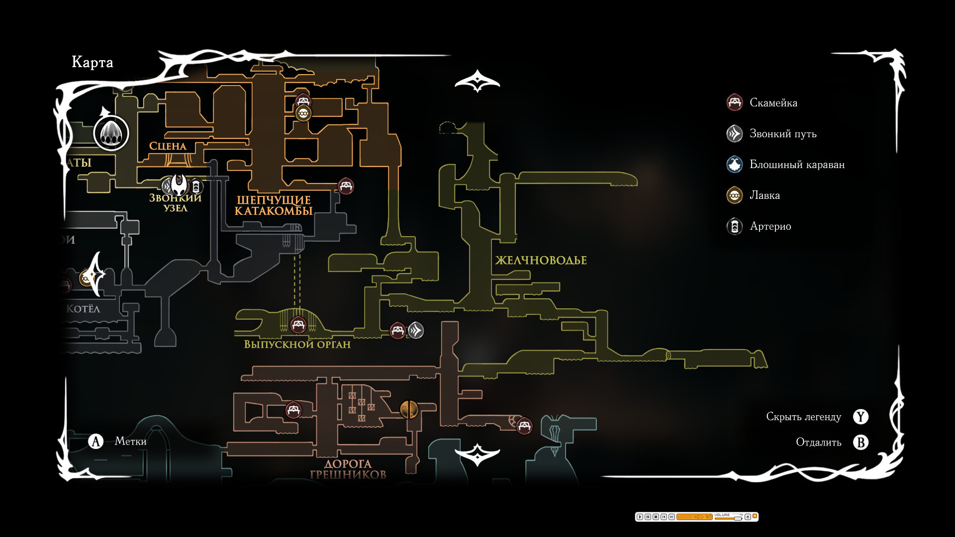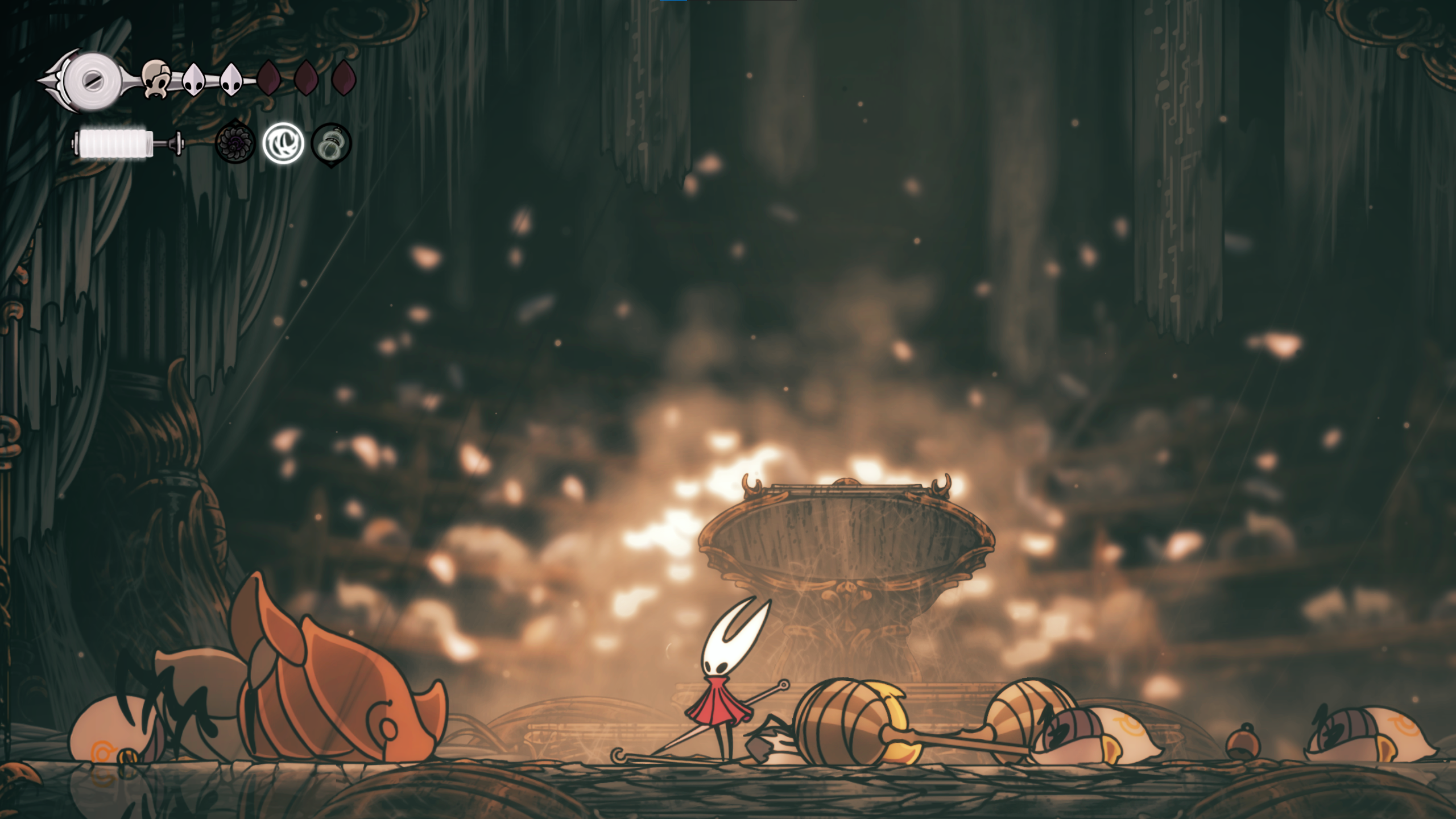 В игре мало секреток по сравнению с первой частью, мало лорных табличек, мало элементов метроидвании, нет поощенрения за исследования локаций и файты с боссами, за которые ты не получаешь бабки. Локации пресные, мобы жирные, в каждой локации по мерзкой арене, в каждой локации по душному боссу. Лор свелся к управлению трупами ласт боссом игры через нитки(Ого, отличное лорное решение, интересно, почему не применяли раньше, АХ ДА...)