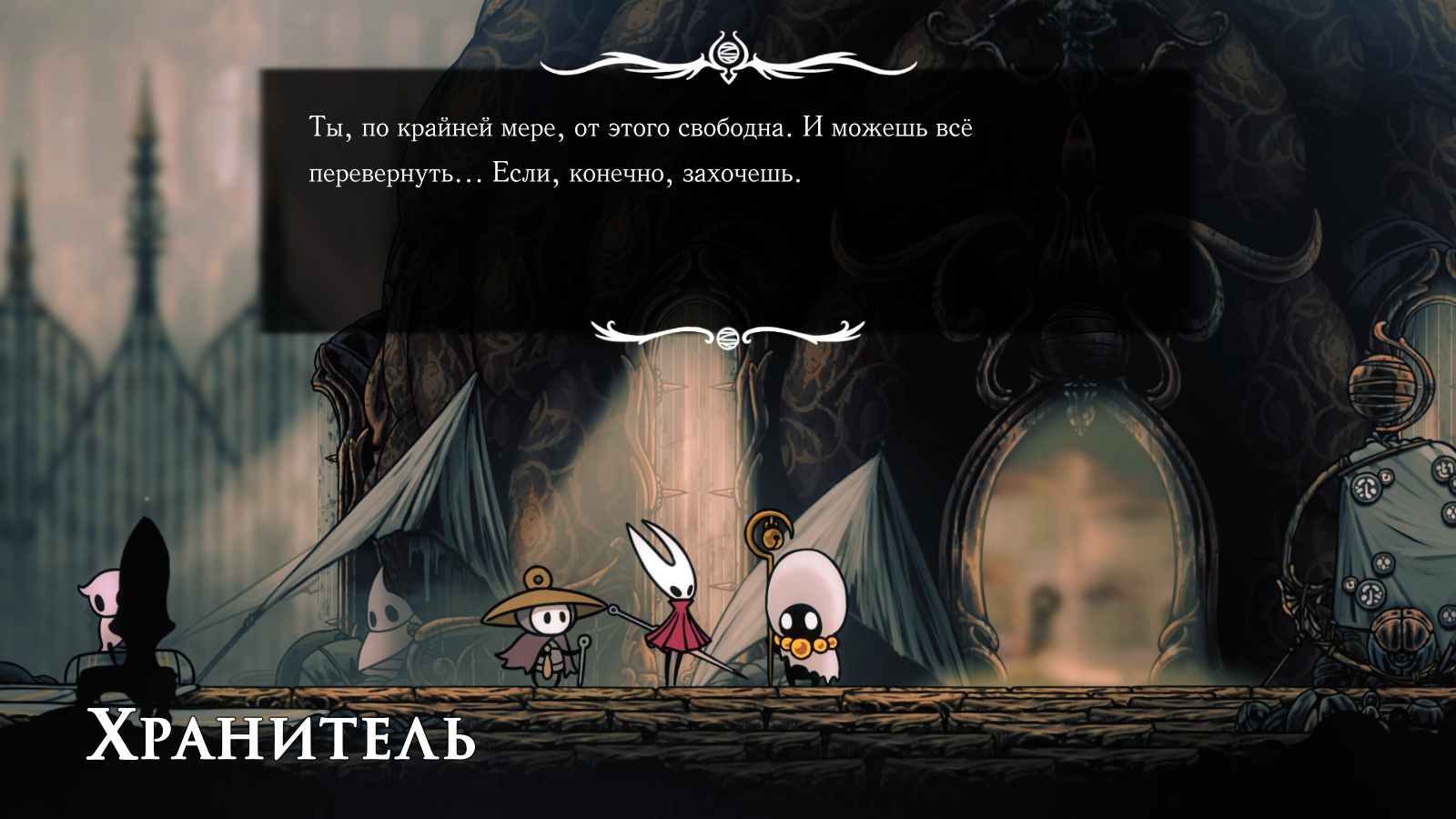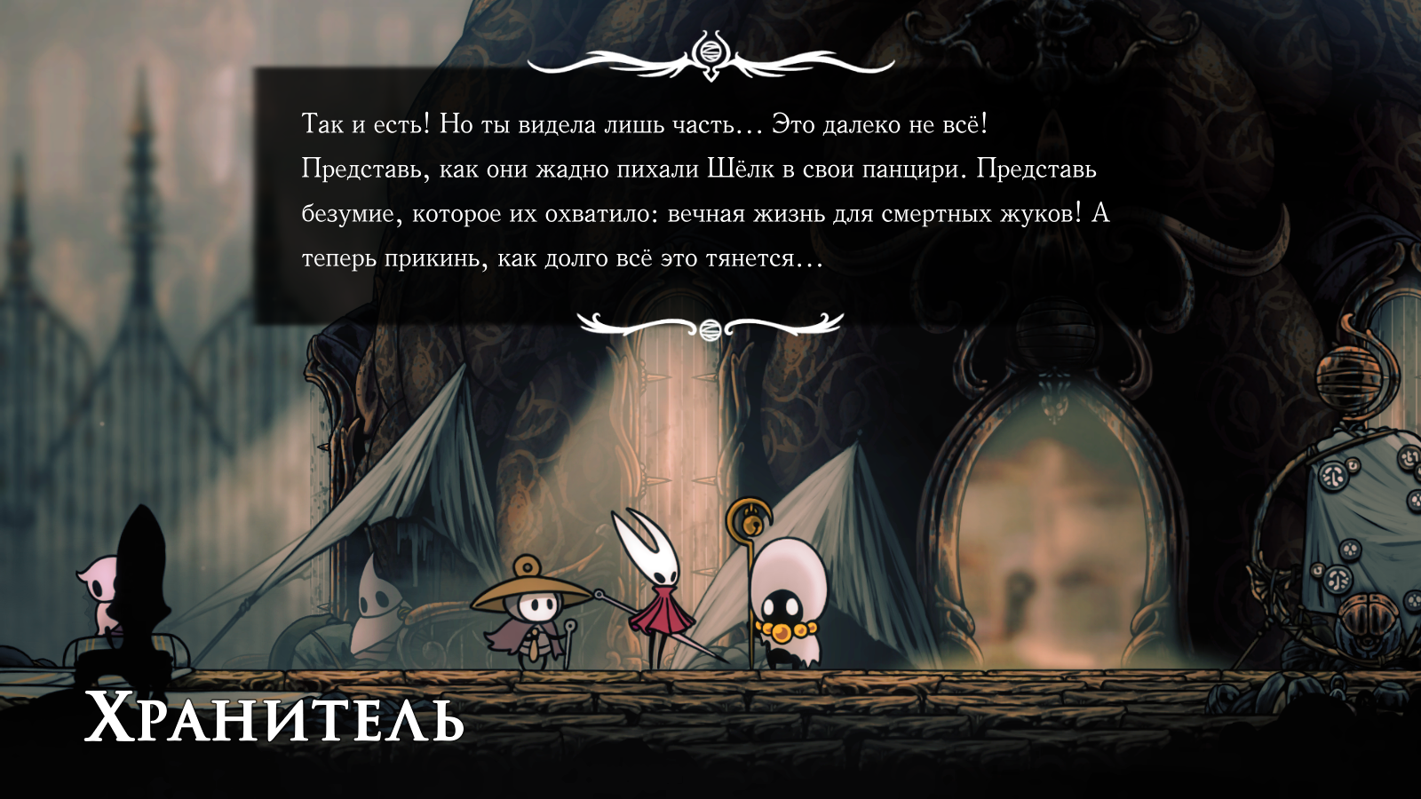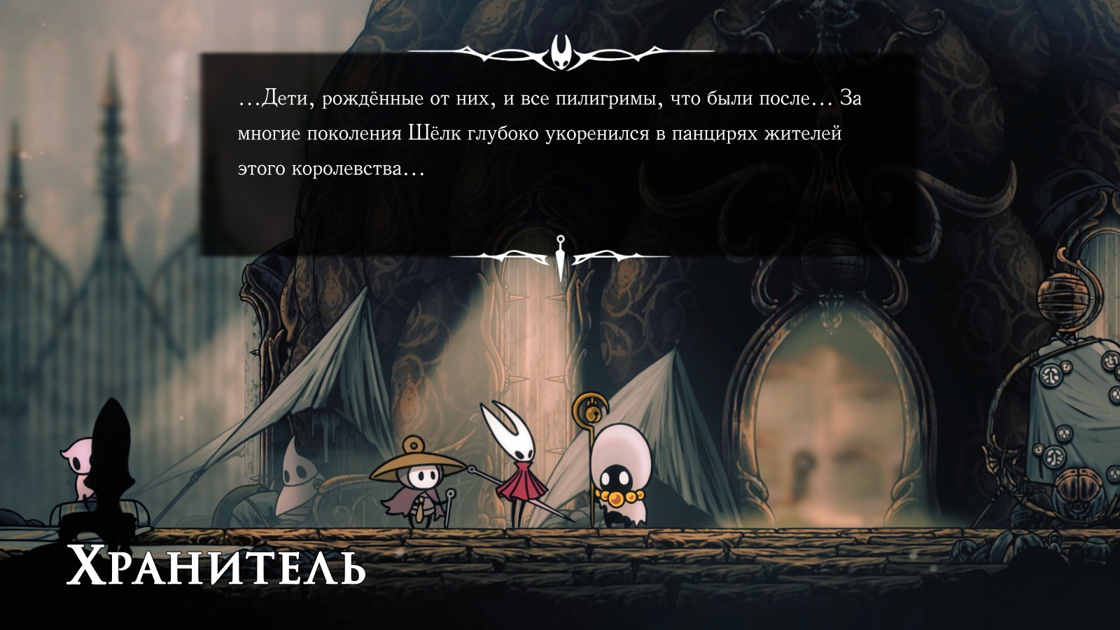 Hollow Knight: По сюжету ты не знаешь кто ты, что ты. Ты просто бродишь по тоннелям пытаясь найти хоть какой-то смысл Silksong: У тебя есть ВЕЛИКАЯ ЦЕЛЬ пройти методичный сюжет, взойди на ВЕЛИКУЮ МЕТОДИЧНУЮ ЦИТАДЕЛЬ, победи ВЕЛИКОГО МЕТОДИЧНОГО КОРОЛЯ БОССОВ
