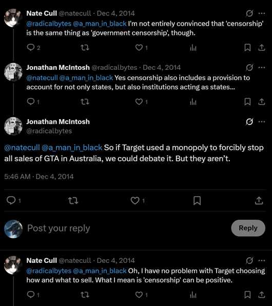 >>9788132 Эти люди постоянно придумывают новые способы цензуры в играх чтобы ты не мог в хейт спич кстати. Ну а всю хуйню пишут под реальными именами потому что знают что им нихуя не будет в отличие от оппонентов