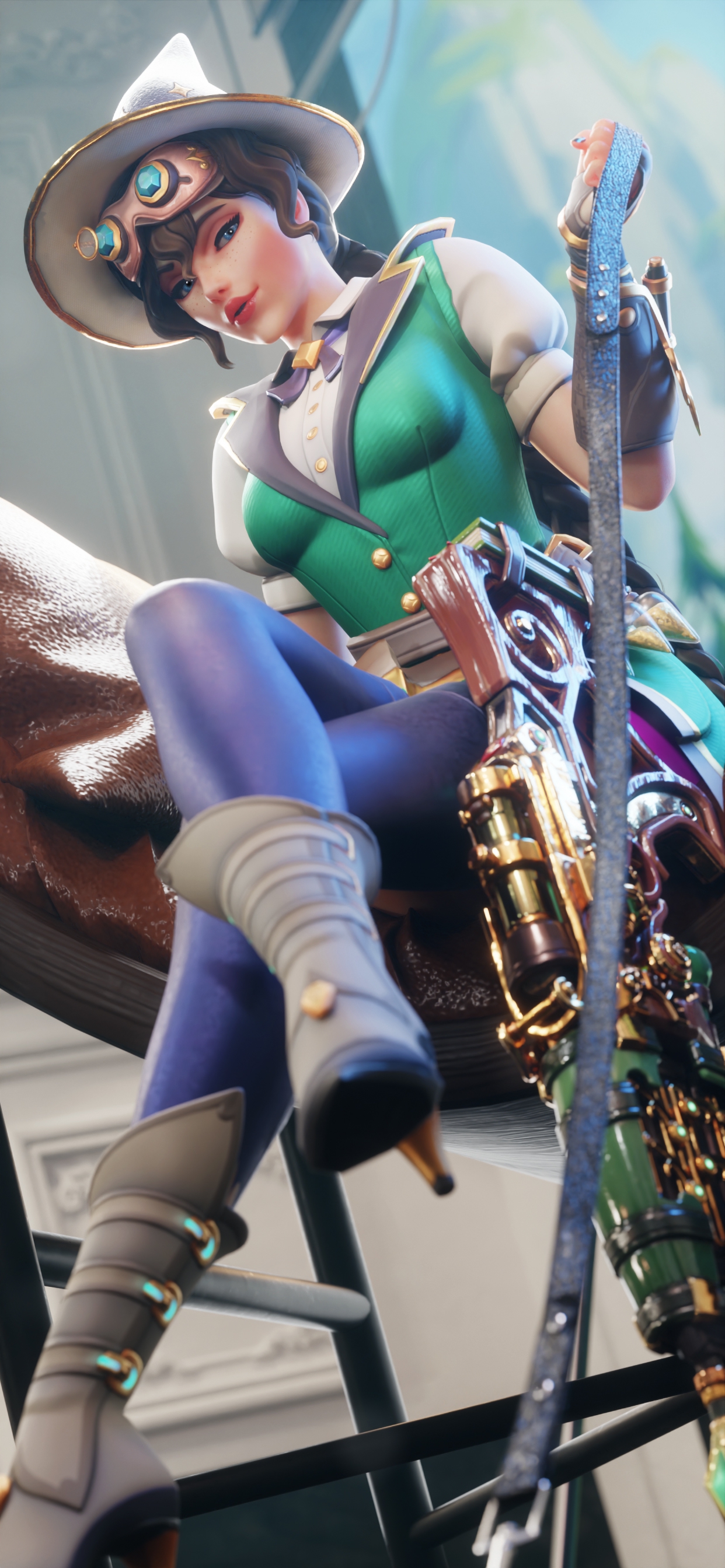 Из открывшейся в потолке дыры свешивается пара отчаянно болтающихся женских ножек. Их хозяйка явно с чем-то борется, но пока это не приносит ей пользы и она застревает посередине портала, не падая, но и не поднимаясь обратно. Иногда сверху доносятся крики, которые свидетельствуют об идущей по другую сторону борьбе.