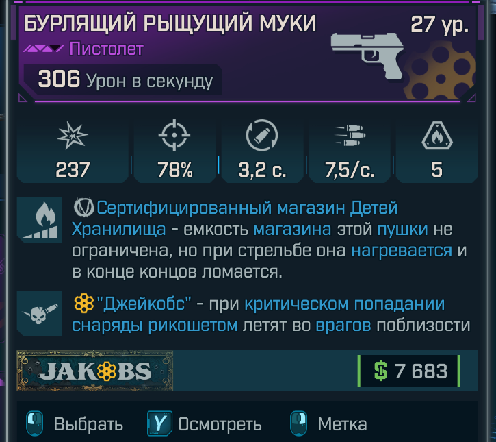 Как я понял, новая фишка этой части в том, что оружейные компании делают коллабы и оружие получает оба свойства от двух производителей. Вот тут я например, нашел револьер Джекобса с модификатором от Детей Убежища, т.е. его не нужно перезаряжать, если он не будет перегреваться.