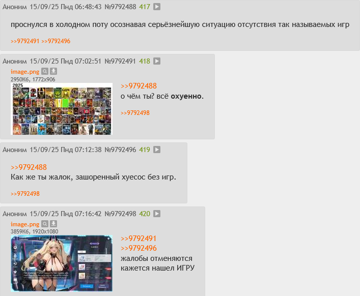 Задумайтесь на секунду: ведь вы из ката в кат сидите, во что играй треде.Кто-то реально играет, кто-то пишет о том, что раньше было лучше, импотенты ноют, что игр вообще нет. Но ведь у всех у нас были одноклассники/одногруппники, которые тоже играли в игрушки, но потом поняли, что лучше играть в IRL, переехали из Мухосранска в какую-нибудь Москву или СПб, достигли карьерных высот — и им больше не нужны игрушки. А вы сидите в треде, перебираете иконки и ищете, во что бы ещё поиграть. Разве это жизнь?