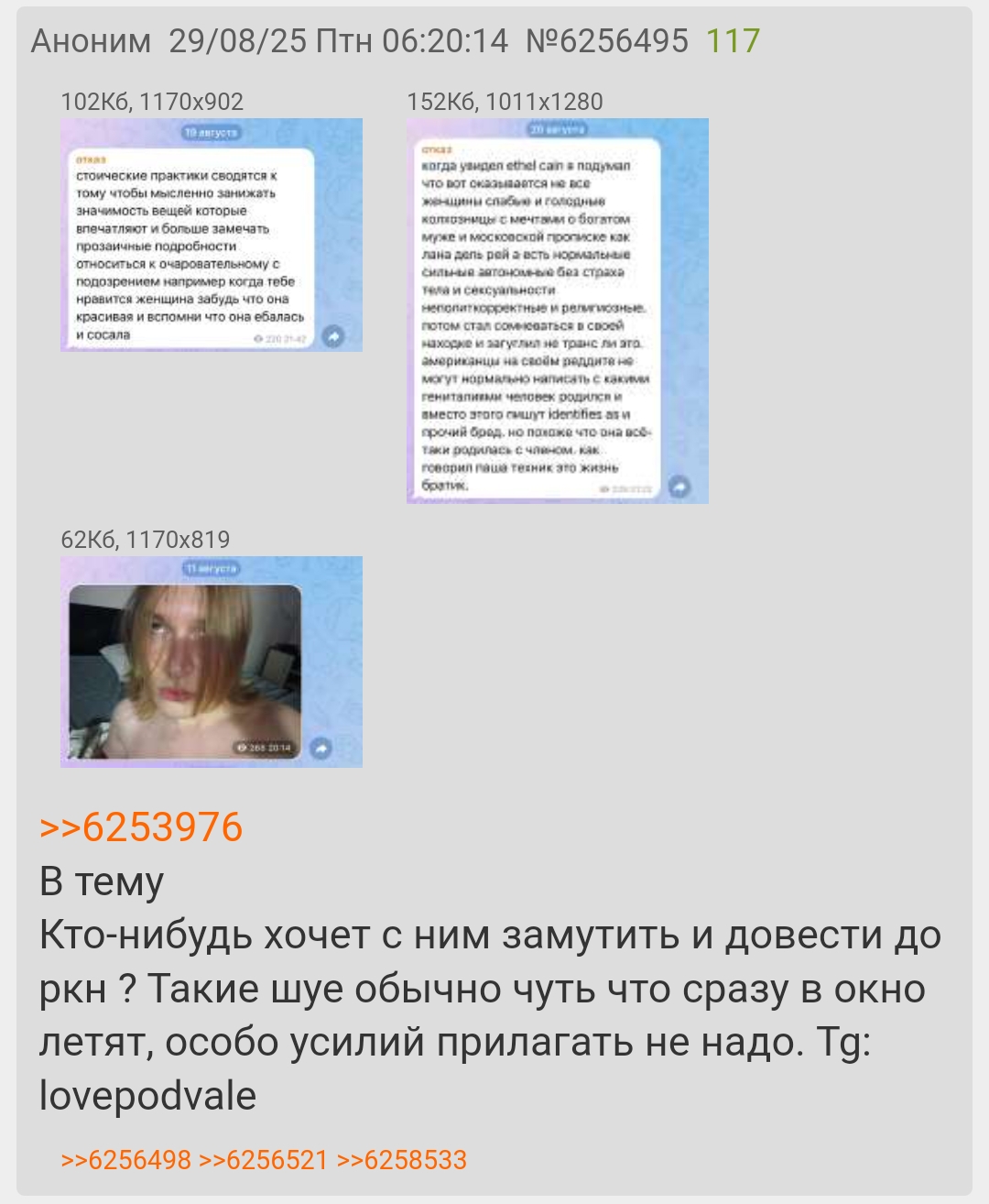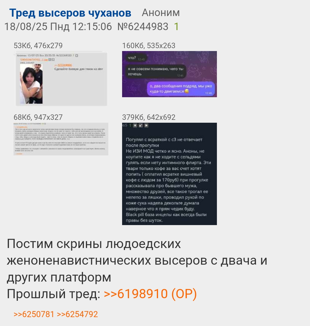>>9803769 Дырявая, тебе всё мало мочи на еблет? Гугли криминальную сводку или я за тебя должен это делать. Передоз от дружбонародии только не поймай при чтении. Мне особенно вот та нравится где свою сису из окна на забор выкинули и она как мусор там насадилась. >>9803777 >>пол доски о ебле и как тяночку хочеца, сидят от недоеба скулят. Чука тупая не может не сводить всё к ебле. Вон у чурбанов и всяких радноверов дохуя секса но разве это удовольствие потыкать в темноте под одеялом как собака? >Остальная половина доски ненавидит женщин за то, что те просто существуют. Заслуженно ненавидят. Но радикальные ослоебы и староверы ненавидят сильнее и обращаются куда хуже но ты же не пукнешь в их сторону. И держи в уме, что не инцелы и двачеры всех сортов проебали а именно ты и тебе подобные проебали этим женоненависникам, правакам и дикарям. Ты в одной обойме с инцелами дырка для слива. Государство думаешь просто так только мужиков завозит а не программы для переселения пезд из других стран? Государство хочет чтобы ты или добровольно легла под грязного, нищего и уродливого мигранта или закроет глаза если он тебя изнасилует. так что ты не туда воюешь но тебе простительно, ведь ты тупое существо которое дальше носа не видит.