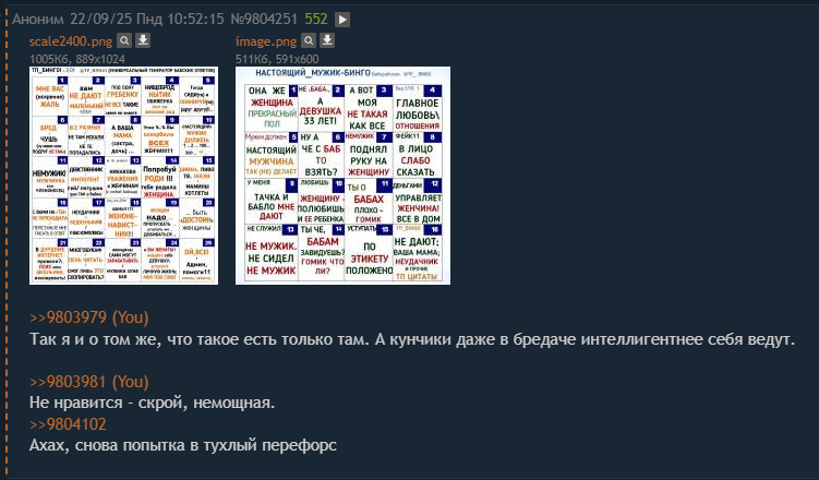 Тем временем на мужикаче в основном хобби обсуждают, игрульки, настолки, спорт, воспитание детей и т.д.