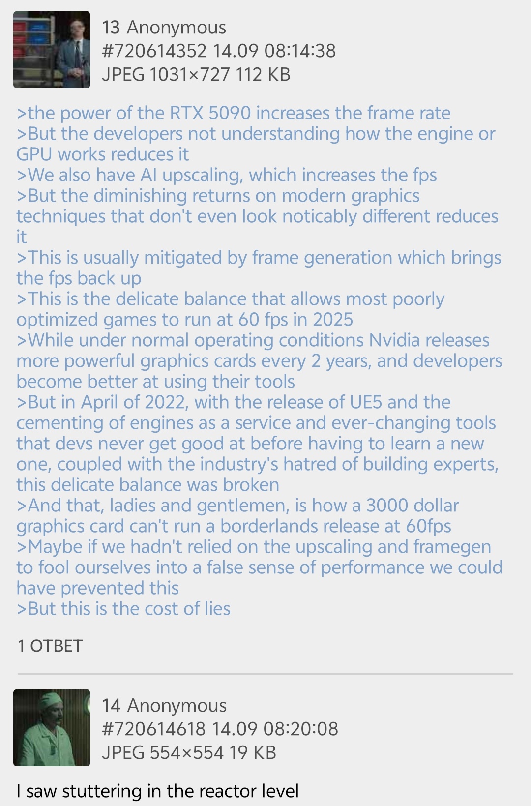 Все адекваты заранее предупреждали, что с генерацией кадров разрабы еще больше забьют хуй, когда хуанг выкатил мфг х4 на блеквеллах.