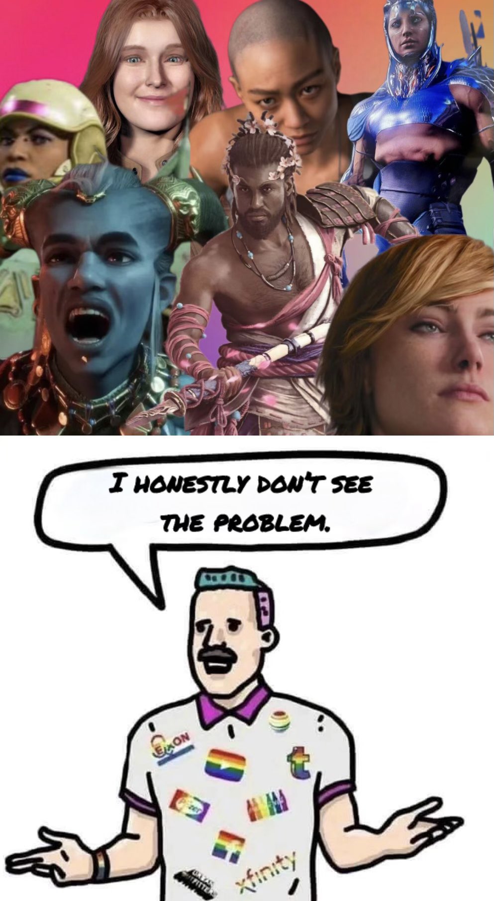 Мне похуй. Играл в сабнавтику белоу зиро, мне понравилось. Нормальная выживалка с атмосферой и духом исследования. Играл в соут оф миднайт, мне понравилось. Нормальное приключение с атмосферой юга америки, с вуду и призраками. Играл в банишерс, мне понравилось. Хорошая история про любовь и предательство, с атмосферой колониальной америки. Играл в вампира, мне понравилось. Опять же, и сюжет, и атмосфера зашли. Много во что играл, что было заклеймено как «повесточный кал». Мне похуй. Я отзывы не читаю. Я смотрю геймплей на ютубе, если мне зашло, я играю. Всё. Цвет кожи и ориентация героев мне поебать, если сама игра неплохая. И обратный пример — базированный рафинированный цисгендерный кингдом кам я дропнул, потому что это ебанная духота и менеджмент грязных труселей, а не игра.