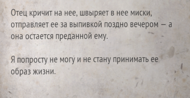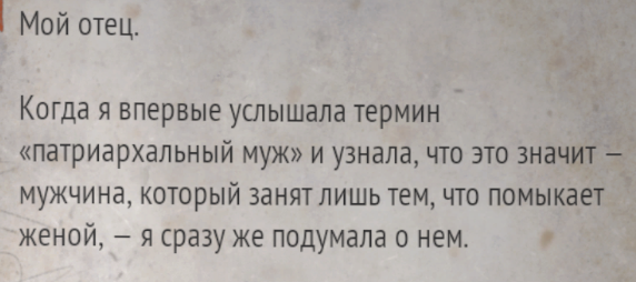 Вместо этого ты теперь видишь пиздиловку со смогом и орштейном в виде патриархального папки угнетателя и пассивной женой, которые в процессе боя приговаривают, что у феминистки нет другого пути как быть бабой, на что она всхлипывает и верещит как xоxол «защоооо».