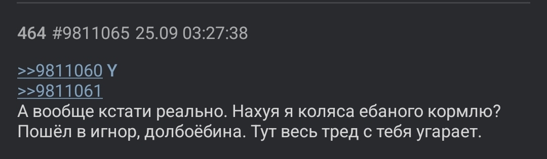 Чёт я хуй пойми. Овощной коляс с трлллингом тупостью проснулся что ли? Что за еблан вяло пытается всех в отсутствии повестки переубедить? Самому не смешно с себя?