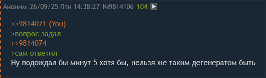 >>9814845 Да, сливаюсь. Что-то решил пойти поиграть в Ф, а не тратить время на спор с очевидно больным дегенератом.
