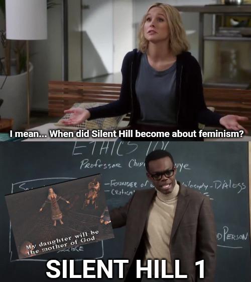 Игра так то норм. Правда в СХ ну вообще никакого отношения не имеет, ни в каком из аспектов. Ну и сюжет всратый, но при первом прохождении не такой явный. Изначально я думал что тянка стала шизом, родители кончи и еще и сестра съебнула к ебырю. Это как бы логично. И под конец записка попадается от матери, типо закажи еще колес у сю, они лучше работают чем нормальные лекарства. И концовка еще такая заебатая, когда идешь к этим воротам, начинает вдалеке играть заглавная тема и искаженные звуки сигналок полиции. Вот прям ахуенно все. И текст песни как бы не просто намекает, а говорит в открытую про дурку блять. А в итоге она просто была нормисом и сю просто из ревности колес с псилоцибином ей дал. И чем прикол. Никакой трагичности. И еще и надо проходить второй раз, чтобы всю инфу получить, да и проходить надо опять с говном в руках, куча тягомотных забегов и бесполезных файтов ради заруиненого сюжета. Нахуй-нахуй. Уговорил себя поверить в мой вариант сюжета.
