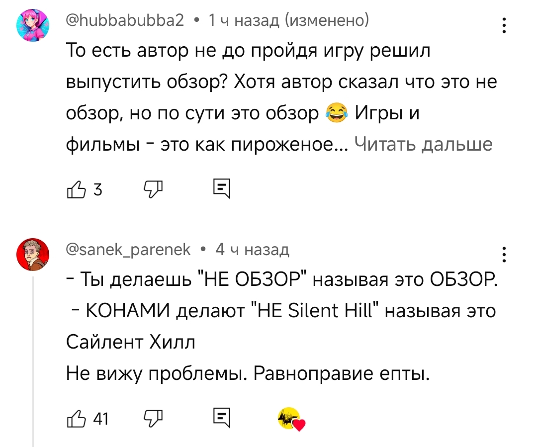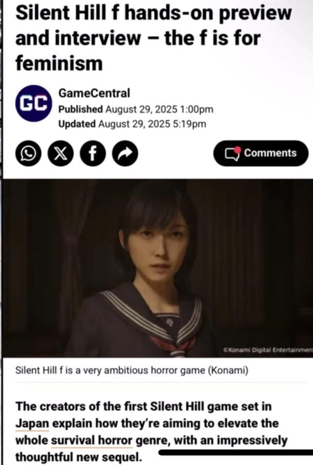 В свое время с удовольствием прошел СХ2 и СХ3 раза по 2. СХ2р тоже навернул - охуенно, но слишком затянуто. Насчет SHf: 1) Не могу согласиться, что это прям не Сайлент Хилл. Это, как минимум, продукт сайлентхиллосодержащий. С толку всех сбил японский сеттинг. Японцы решили ни в чем себе не отказывать и накрутили максимальной японщины, прям уровня аниме. Квадробер с серьгой - это конечно очень странно. С другой стороны, если приглядеться: город в тумане, ГГ с ебанцой, переход между мирами, монстры дцпшники, Ямаока стучит трубой по батарее, даже культ есть (ну лисы, ну и что). Угадай игру по описанию. 2) На повестку похуй. Сейчас бы рваться по хуйне. Тем более, ГГ азиатка, что как будто меньше раздражает в плане повестки. Тем более в СХ у ГГ всегда проблемы с башкой. 3) Оно летает на моем копроноуте с 4гб vram. О господи, хоть на том спасибо.