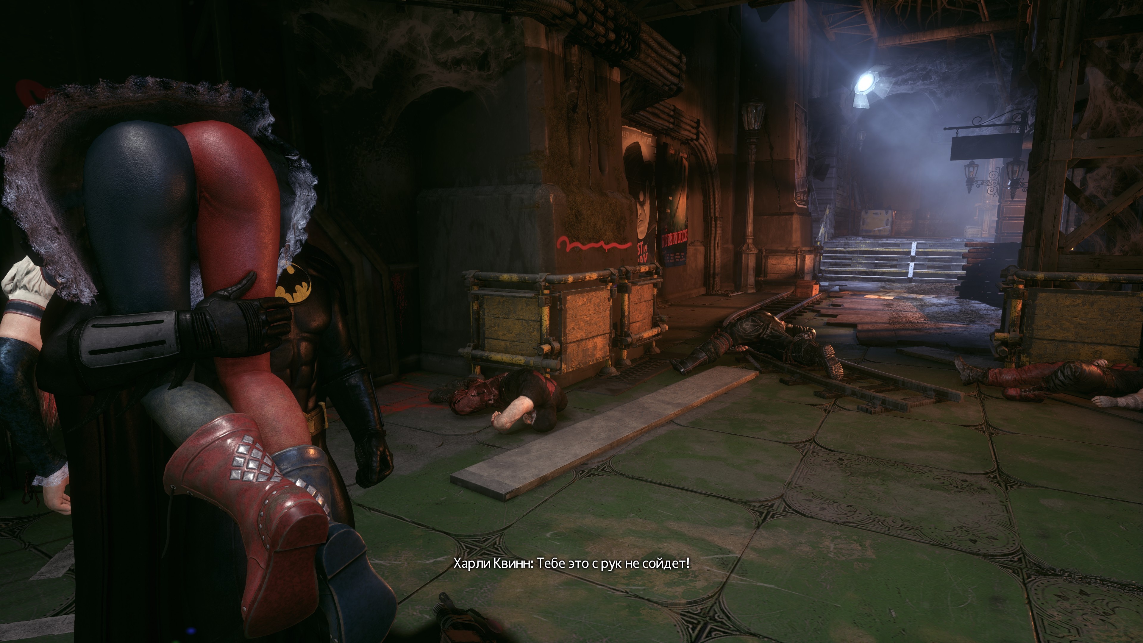 В таких случаях имеет место нокаут - всегда, но не в случае Квин, которая отлеживается на полу/плече, хотя является ровней подсосов Бэтса по боевым навыкам речь про Аркхам офк. Нет, здесь что-то есть...