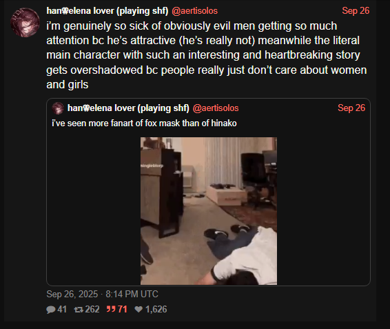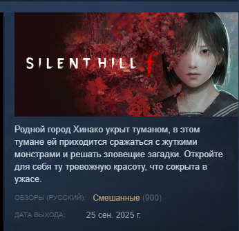 Чет пока полчасика поиграл.. Ну продакт вэлью на месте, вопросиков особо нет.. Но за пределами каких-то специально оставленных моментов характерных для серии (туман, мобы-манекены и тд) - атмосферно вообще на СХ не похоже. Вайб какой-то скорее из фатал фрейма, но не из СХ. Т.е. ощущается пока как какой-то более мейнстримный подростковый japan-themed хоррор "с мистекой", нежели как обычно делаются игры в серии СХ в плане режиссуры и общего арт дирекшна. Плохо или хорошо пока не понял, но иначе. Кто сейм?