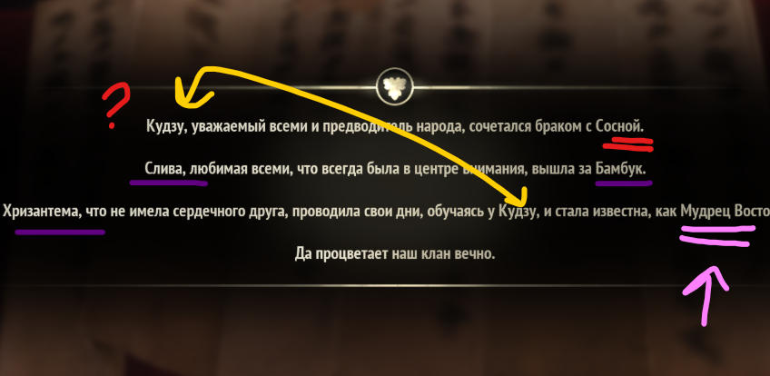 >>9822229 > с этими листьями кудзу Что такое "листья кудзу" я тоже не представлял. Но Хризантема - это цветок с кучей лепестков. Хризантему - я понял. И она - мудрец востока, то есть на востоке должна быть. Собственно "мудрец востока" - указание места, от хризантемы и надо плясать. Также хризантема была одна.