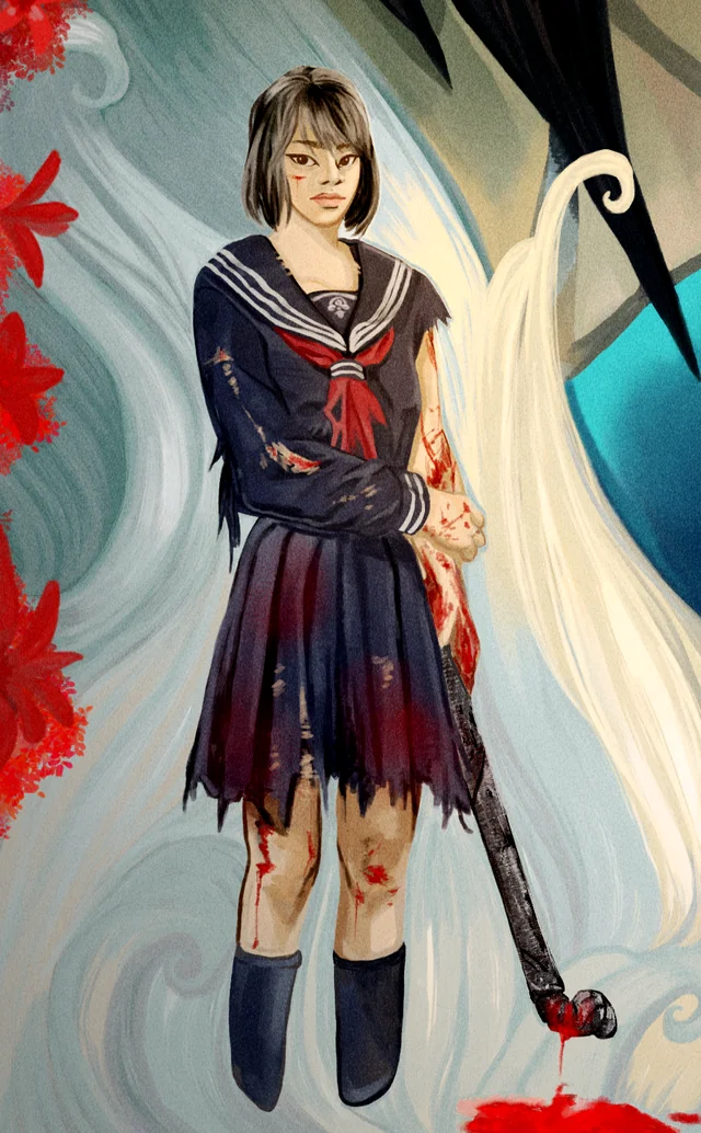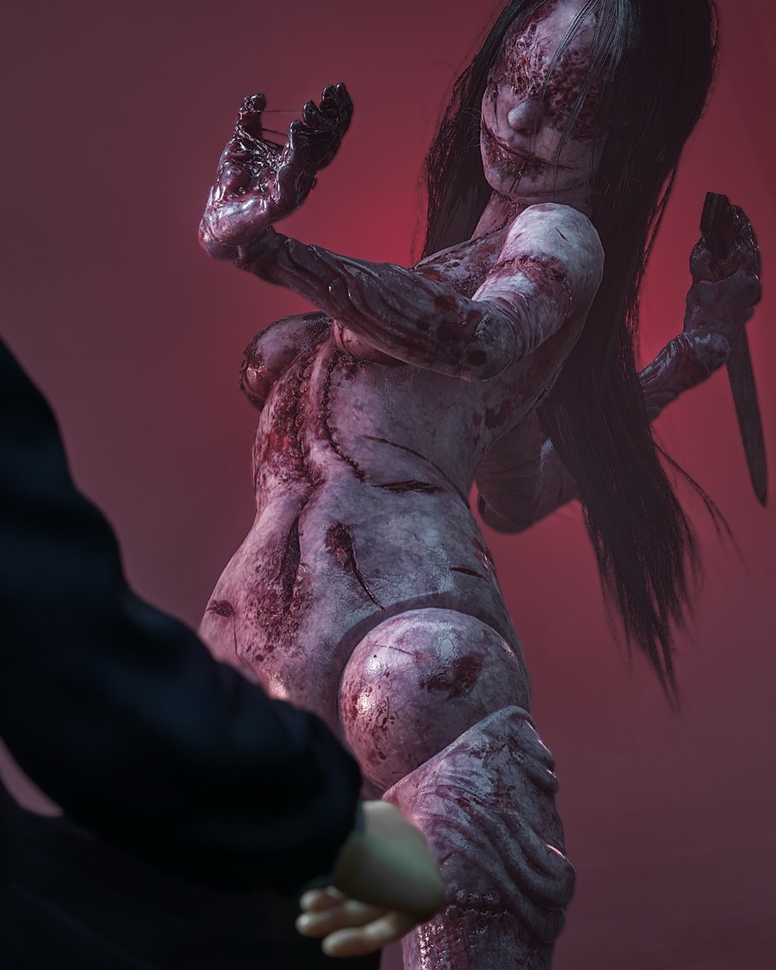 Кстати пирамидхедыч этой части это скорее Хинако-невеста, тоже некий антагонист по отношению к гг, преследователь, ну выглядит не то чтобы страшно, но очень эстетически пиздато, традиционное свадебное японское платье красивое. Я ещё думал что вообще значит отрезание руки, обезличивание понятно, клеймение как вещь понятно, но рука? Первое что мне пришло в голову выражение "просить руку и сердце" у девушки, но думаю вряд ли у них есть такое выражение. Как оказалось есть действительно похожее по смыслу выражение и тоже связано с рукой, такие дела.