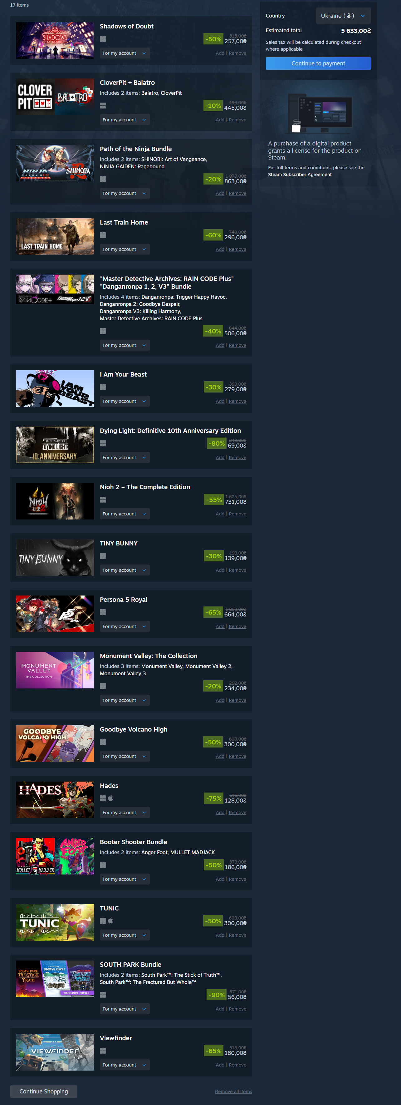 Покупаю в основном индюшатину либо АА игры. Они по соотношению цена/удовольствие дают на клык любому современному ААА говну. Поэтому я не прочь купить их (но по скидке))) ), поддержав разработчиков, благо зп позволяет и цены сносные.