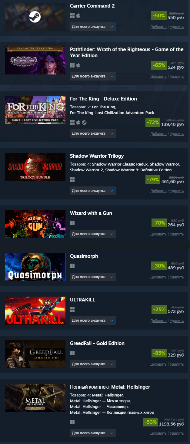 >>9821252 Всяких регулярных скидок давно уже каждую неделю жопой жуй. Толку от этой распердажи и обсуждения? Я на прошлой неделе взял Weird West по 85%-ной, и вот он щас снова 85%.