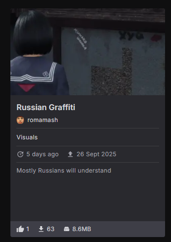 >>9826459 >Жаль что костюм не рвется. Это главная проблема всех модов на костюмы. Они выглядят в начале игры неплохо, но потом портят атмосферу тем, что остаются постоянно в идеальном состоянии.