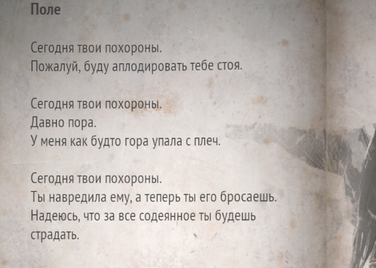 Щас примерно на середине второго прохождения. Вопрос треду - ценители творчества МАЭСТРО здесь присутствуют? Ещё с самого начала удивился буквальному цитированию цикад - вид на деревушку маленькую сельскую японскую деревушку сверху(ну как в цикадах, помните да), потом ещё хуже - один из героев это мальчик с битой, который говорит главной героине, что не воспринимает её как женщину(ну как с мион и шион, помните да), одна из главных героинь это жрица мико(ну как рика из хигураш, только её тут зовут сакуко, ну почти как сатоко, прикольно да отсылка, а другую девочку зовут ринко прямо как рику), ну ничего не хочу сказать в реюзах имен, у маэстро это повсеместно, но позабавило. Далее - испарения из болота, паразиты, люди-зомби, ДАМБА, проклятие ОяшироОинари-Сама, твист с тем, что гг-поехавшая и порубила друзей, злой дядя батя, швыряющий миски с мисо-супом, местный добрый врач, богатая семья, которая всем не нравится, ТАТУИРОВКА на спине главной героини(прямо как у шион-мион), забыл упомянуть о сестре главной героини(прямо как у мион-шион, сатоко-сатоши и т.д.). Может забыл что, но это вспомнилось сразу. Сейчас на второе прохождение Хрюкиши пытается заставить вникнуть в историю верования деревенских селюков, используя для этого заметки ебаной Такано Миё, причём это детектится по названию дневников "ДНЕВНИК МЕСТИ". Лучше скажите сразу - тут тоже всем фашисты сделали газенваген, а игра это сон собаки, или Хрюкиши что-то новое придумал всё-таки? Не видел в тредах обсуждения этого, либо тут никто новеллы японского Достоевского не читал, либо это уж слишком очевидно, чтобы об этом говорить, но я выскажусь.