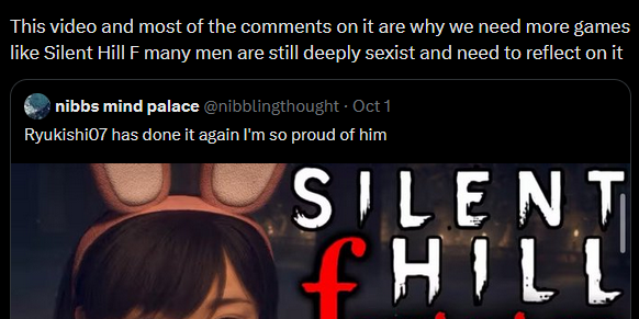 Ехх, вот бы сайлент хилл, как в старые добрые, с дубовым управлением, которое работало бы на погружение, делая игрока более беспомощным. Вот серьёзно, как можно испытывать ужас, если у тебя есть дэш, парирование и, тем более, иззаплечный кал, благодаря которой ты видишь всё вокруг, и твоё воображение не работает на протяжении всей игры?