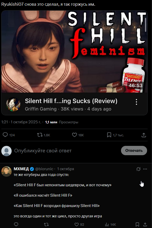 Так, я не понял. Это тот самый сайлент хилл или не тот самый? Туман на месте? Птеродактили? Культ есть? Великолепная атмосфера меланхолии, которой хочется наслаждаться? Я понимаю, что вы тут все японодебилы, но мне нужна та самая атмосфера старого доброго городка сайлент хилл без выебонов чтобы вновь прочувствовать дух серии сайлент хилл