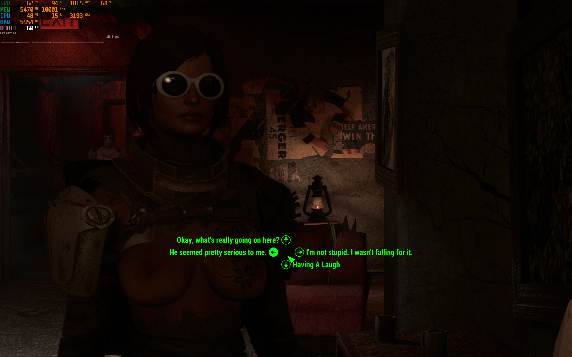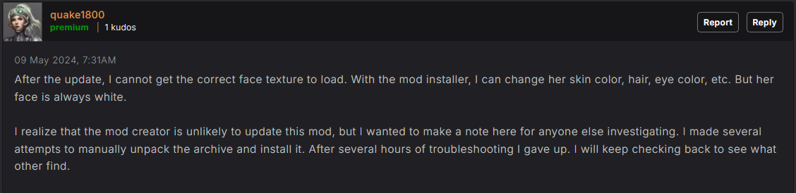 Нашла мод делающий Кейт полушреком. Как бы не логично в рамках лора, ведь мутанты не размножаются, но может ее просто удачно окунули в чан с врэ или типа того. В любом случае, ставить уже поздновато как-то