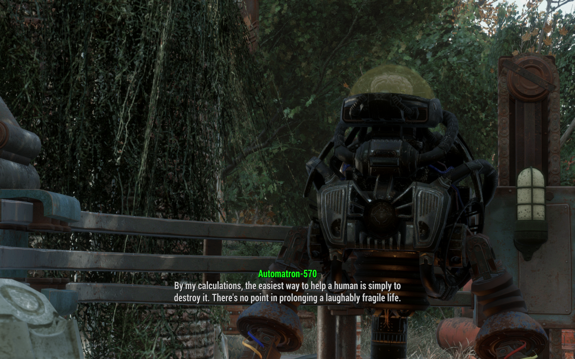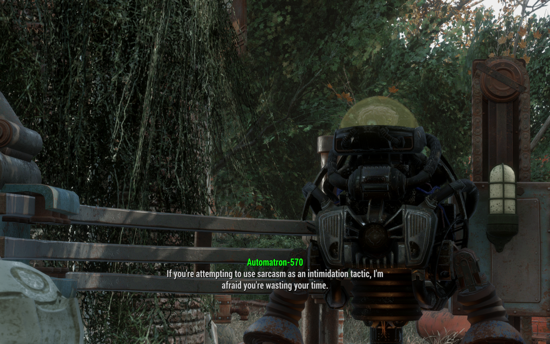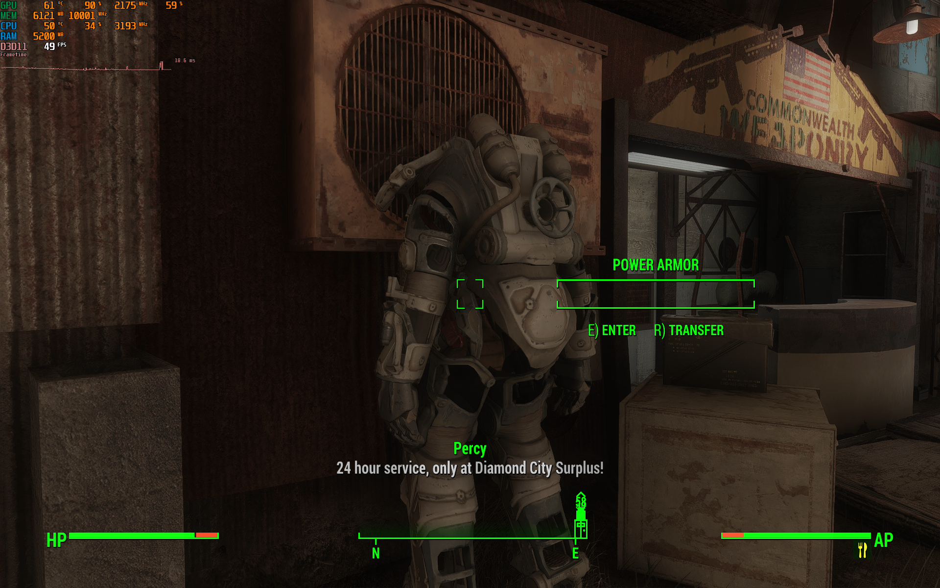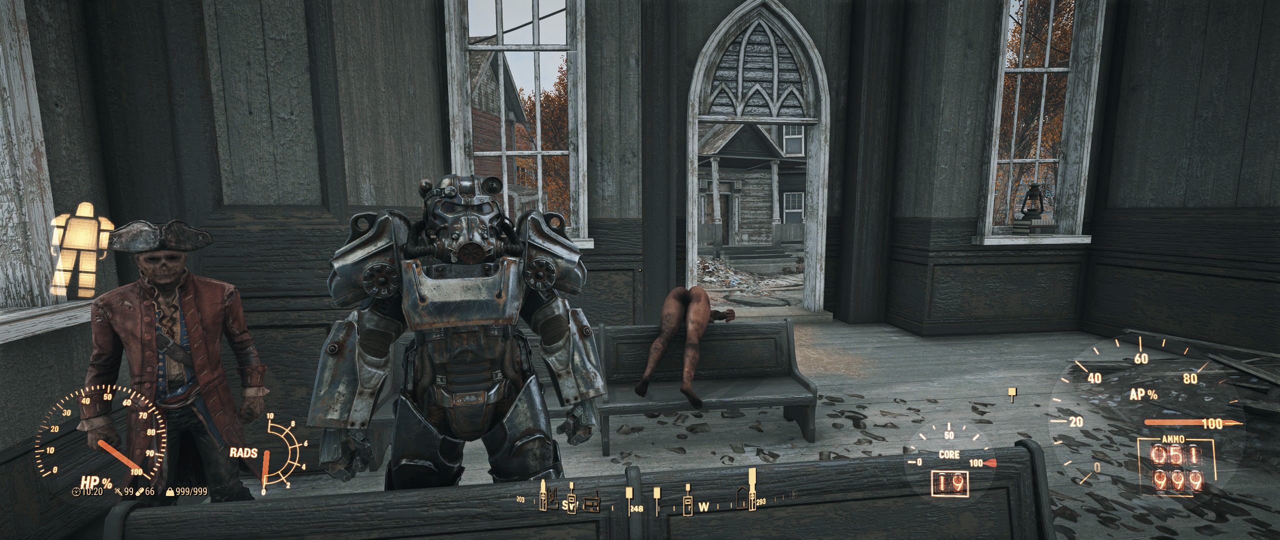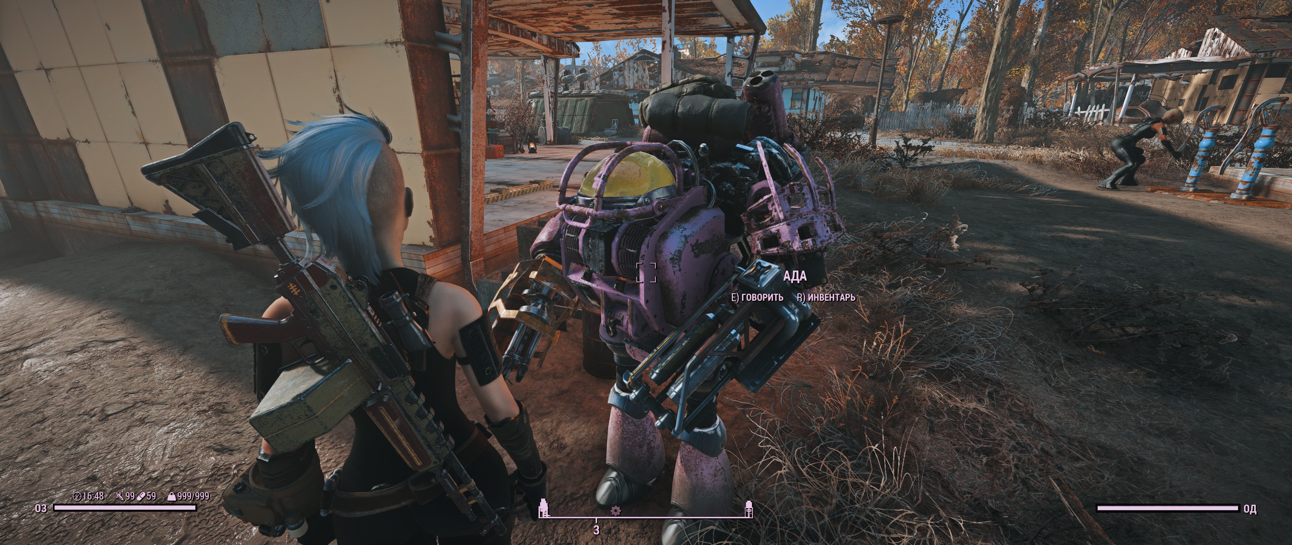 Купила каркас силовой брони у Артуро за 3к крышек -- это первый известный мне способ нахождения брони в этой сборке. Без брони бегала до 27лвл получается, то есть мидгейм. Но беда в том что быстрое путешествие в силовой броне недоступно без апгрейда мотоцикла, а у меня даже ядерных блоков с собой нет (не знала, что буду покупать именно сейчас).