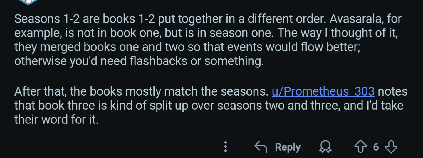 >>9826668 Не, там наоборот. Первый сезон - это половина первой книги, или мб чуть больше. Второй сезон еще половина первой и дальше я уже не помню как они адаптировали