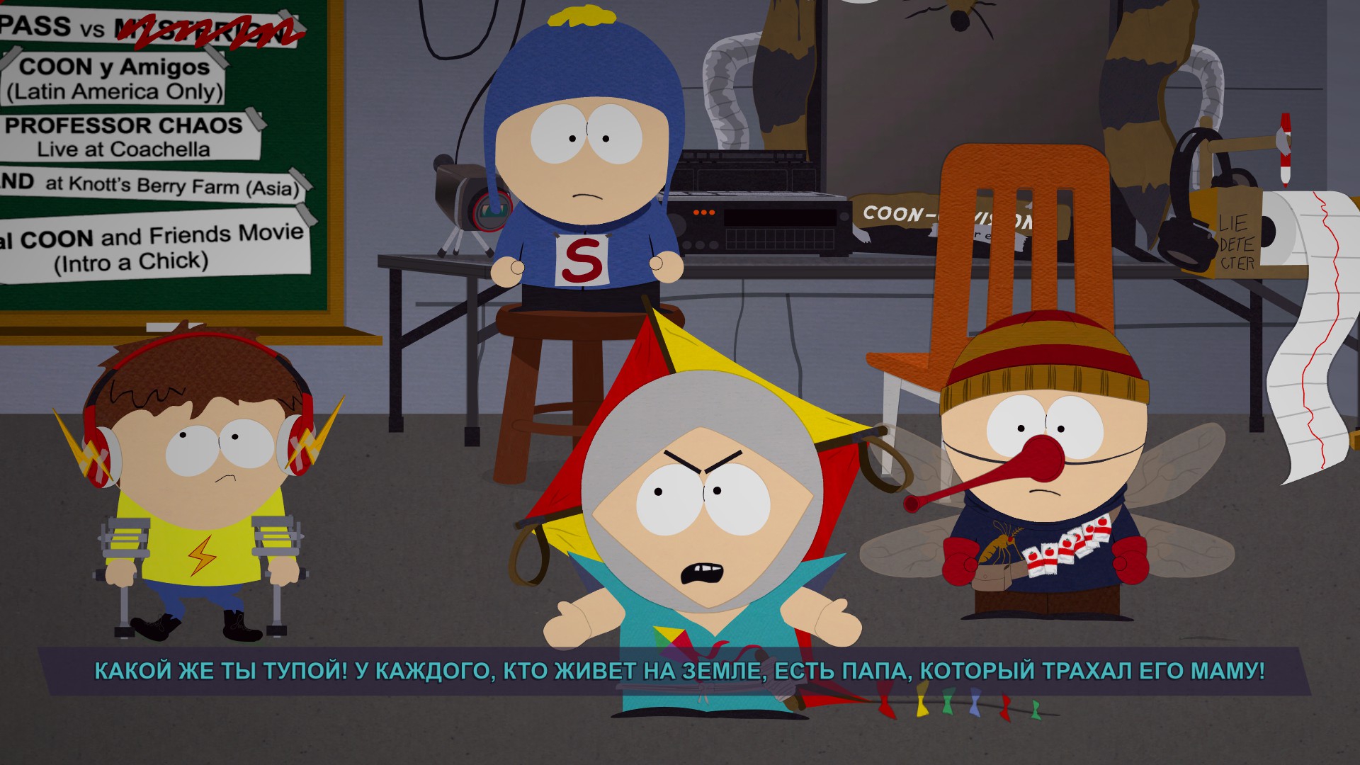 В 6 лет я увидел, как мой отец трахал мою мать...если бы я зашел в комнату на пару минут раньше, то этого бы не случилось...в тот день я понял насколько же мир прогнил. Так я и стал супергероем Поперденем и теперь спасаю Саус Парк вместе со своей лигой джентельменов. Сейчас вот с напарником совершили ночную вылазку по городу и наебашили какому-то пьяному скуфидону, а потом пошли в стрип бар где сделаем тоже самое со всеми присутствующими.