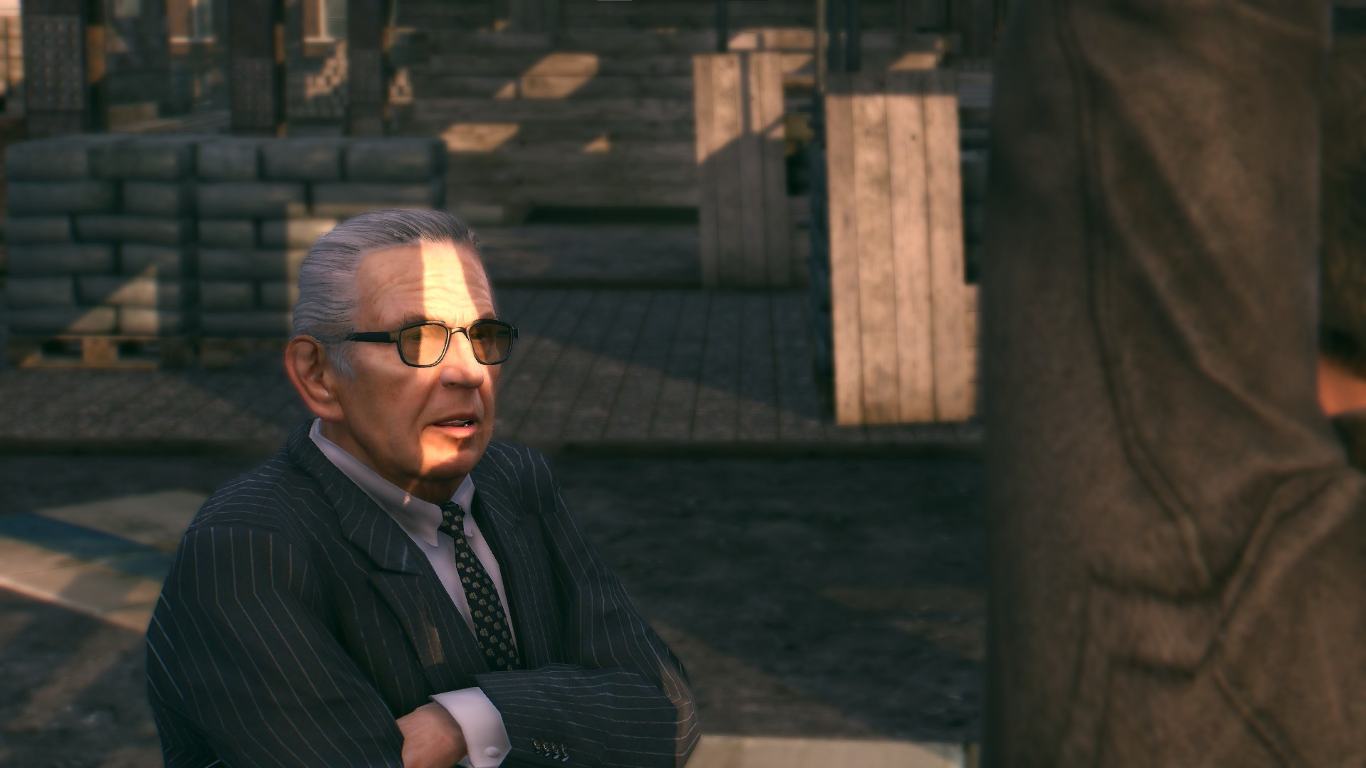 В общем-то всё было хорошо. Прям норм. Шлюхи, сизьге, убийства. Но.. Появитлся Петросян. Буквально. Я блять даже скрин нажал автоматом, увидев. И ровно с этого момента игра пошла по пизде. Что в игре наебнулось, и почему, я так и не понял. Сначала почему-то все диалоги стали проигрыватсь по два раза. - Джо! - Джо! - Мы должны поехать к нему Вито! - Мы должны поехать к нему Вито! И , мало того, вся эта хуйня начала друг на друга наслаиваться и конфликтовать. Перезагрузка нихуя не дала. Далее по сюжету друганы убегают от Петросяна и его ебучего Аншлага, и убежал, добежал до конца и.. Нихуя не происходит. Ну логично! - подумал я. Надо было игру полностью оффнуть, а мож и комп перезагрузить чтобы кэш игры выгрузить. НИ ХУ Я. Как блять в сейве был чекпоинт нерабочий, так и остался. Я вспомнил, что убегали мы вдвоём, и прибежал я один. Поднялся обратно наверх стройки и.. Да. Там стоит неподвижный НПЦ Джо. КОторого я минут 15 протолкивал через целый уровень в самый низ, чтобы игра заработала дальше. Заработала, но.. С какого-то хуя все персы стали хитренько коситься в заставках, что пустило по пизде всю атмосферу окончательно, и сделало из игры норм такую комедию. Добавить к этому изнаальные пляски с "ой блять не работает русский надо просто.." и "ой блять оказывается не работают сэйвы надо просто.." и мозг сразу легко определяет разрабов ремастера в петухи. ДЛЦ, после этой всей хуйни, играть совсем не захотелось.