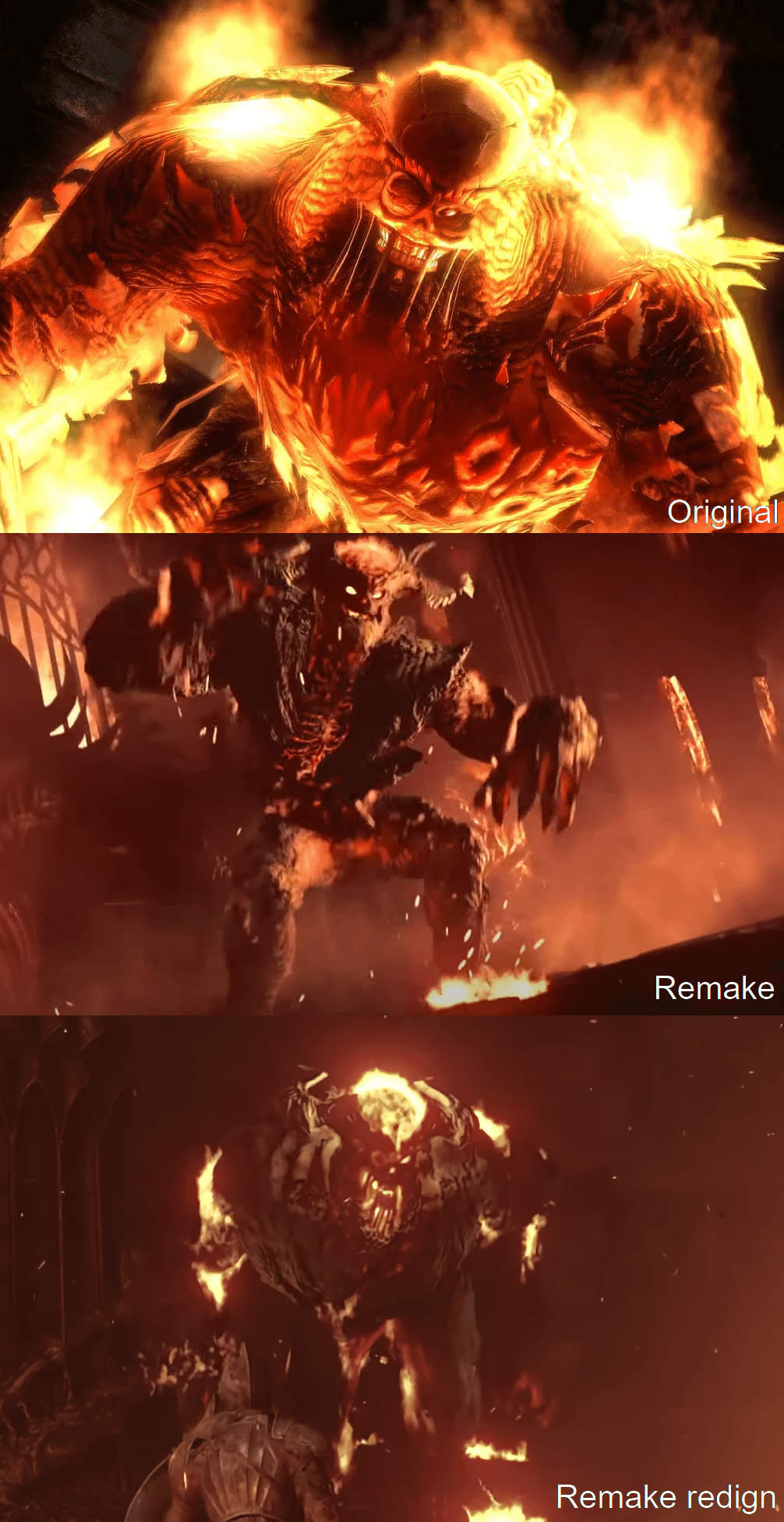 >>9817471 > Дизайня внешку босса для ремейка чел на оригинал не смотрел вообще, зато смотрел на диаблу, в результате чего железный мужик в огне стал лавовым. Даже нормисы охуели и в комментариях писали об этом, в результате чего художнику пришлось переделывать говно и он в твиторе слегка поныл Справедливости ради оригинальный дизайн флеймлюркера это невнятная хуета которую ещё и не видно за эффектами огня.