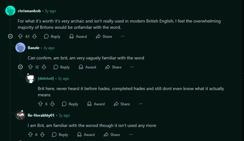 >>9855780 Мне кажется ты охуеть как преувеличиваешь, на самом деле. Я бы понял ошибку в распространенном слове или словосочетании, но конкретный blackguard даже носители не сходу скажут что значит и подумают, что просто ошиблись и пробел забыли А переводы соулсов на русский это вообще хуита хуитой. Я когда проходил смеялся местами, когда "for what lord taketh no spouse?" переводят как "почему вы не хотите вступить в брак?"