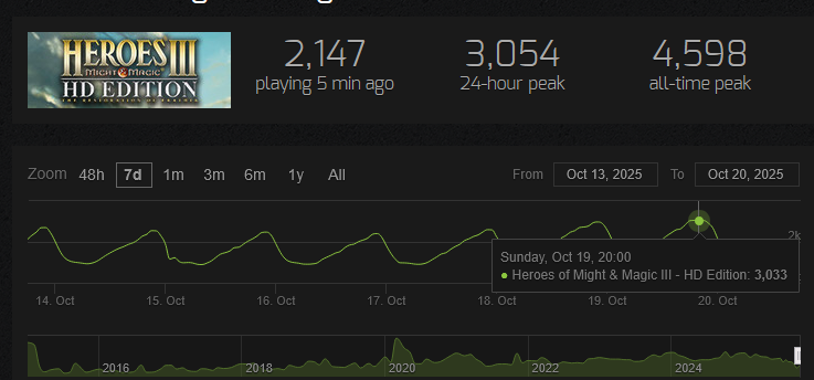 И еще раз говорю, что эти 26к онлайна в день релиза она получила только по причине надписи герои меча и магии на обложке, без этой надписи там было бы 500 человек.