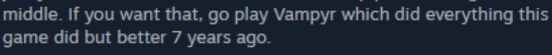 Лучшее что было в вампирах это первый акт где можно было особо не драться, а просто пиздеть и выполнять интересные квестики. Вот к этому надо стремиться в вампурских играх, к проработанной СОЦИАЛКЕ.