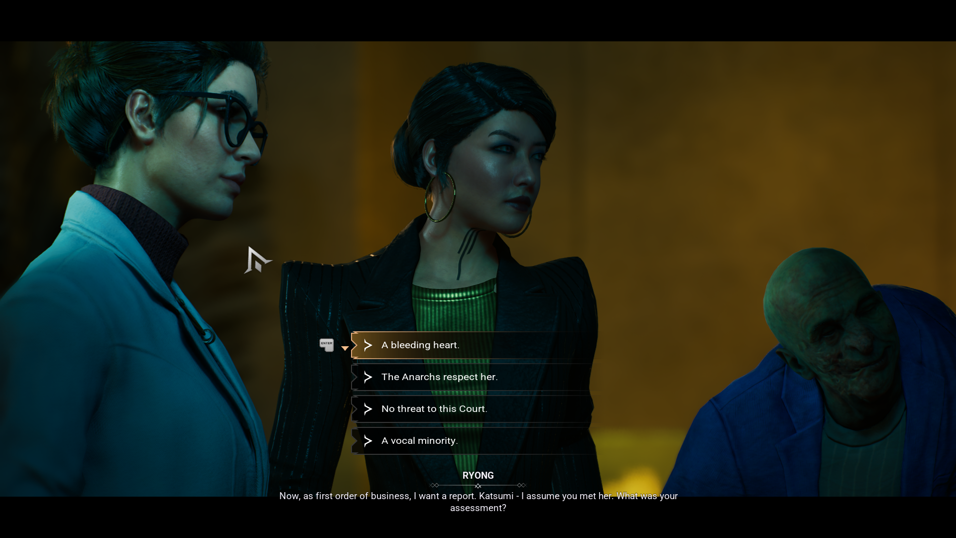 Пиздец, реально никакого выбора и как же уебски сцена поставлена. -За хорошо выполненную работу я награждаю тебя работой! Теперь ты мой шериф! -Ты ебанутая? Я мелкой соплячке служить не буду. -Итак, шериф, слушай свой первый приказ. -Да, госпожа. Пиздос. В первой части ты был чмоней которую лбой попустить может, лякруя мог задоминировать, а тут что? С хуев мне на нее работать? Пошла она нахуй, их там 3 вампира во всем здании нахуй и никто из них на бойца не похож.