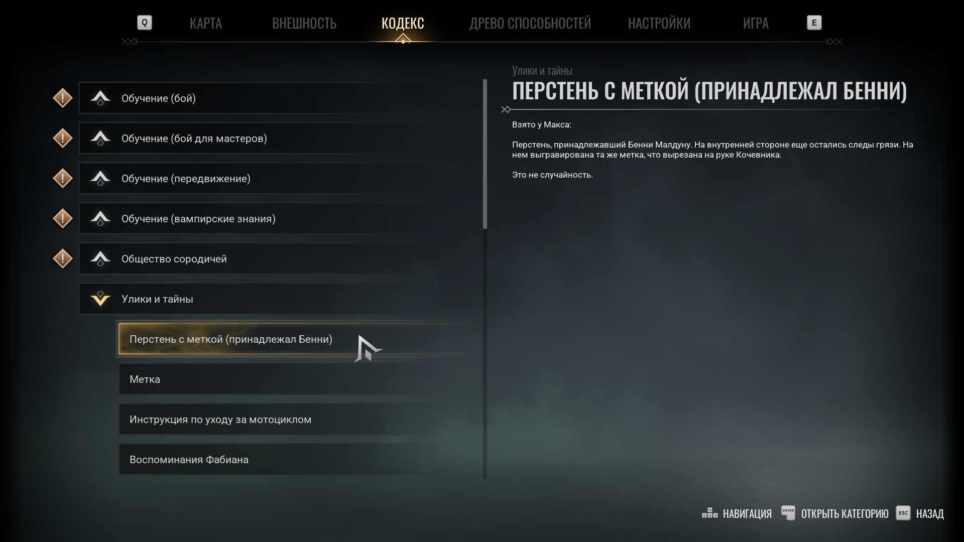 >>9873341 Надо делать игр про гуля шестерящего на вампиров, который поначалу вообще не понимает что вокруг происходит и все его задания своятся к принеси подай по классике. Затем его делают вампиром и сразу становится веселее, начинаешь набираться опыта, втягиваться в интриги и скандалы. Потом проходит несколько лет, может десятилетий, и вот перед нами уже опытный прокаченный сосала стремящийся стать хозяином своей нежизни. Ну это в идеале, а сейчас имеем внку свомещенную с симулятором ходьбы.