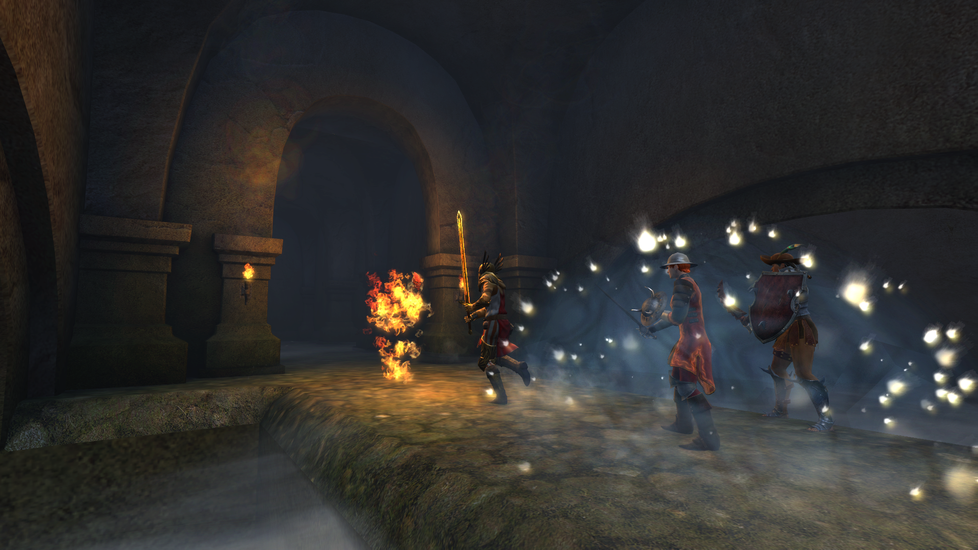 В канализации под Фейрдоком встречаются все 3 типа в единой кишке длинной метров в 100: спева мы гонимся за заскриптовано неуязвимыми врагами которых нельзя атаковать, потом десяток средних бандитов типа 1, следом пара сильных огненных элементаля типа 2; за ними пара крысы типа 1 (уровня же 1 по ощущению), и финальная арене встречает заскриптованным фаерболом в ебало по всему отряду от того же неуязвимого мини боса, при поддержке жостких колдунов личей типа 2.