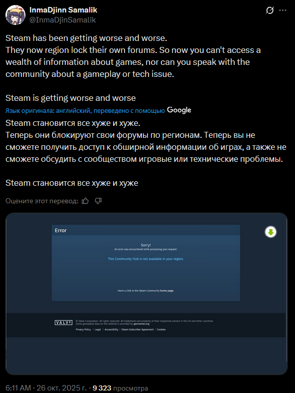Похуй на ножи, но то что центр сообщества отрубили тем, у кого в регионе игра недоступна. Ебал маму Гейба ебаного.