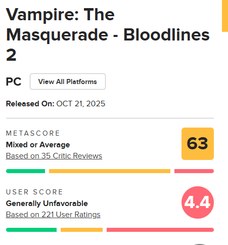При этом у игры реально достойный сторителлинг, мне он наверное больше чем у 1-й зашел, есть ощущение что ты в вампир сосаети и все вокруг пидорасы со своими скелетами, крутая атмосфера, моменты с Фабиеном мне тоже зашли, но все это просто уходит в помойку от всратого окончания, даже как чисто сюжетная игра она в итоге не вывозит. Но какую-то долю кайфа можно получить, ибо альтернатив про вампиров сегодня в целом нет. Вспомню только кусок говна под названием Vampyr который я дропнул спустя минут 20 устав от нытья гг про "пок пок я стал чудовищем как теперь жить" он даже попытался покончить с собой