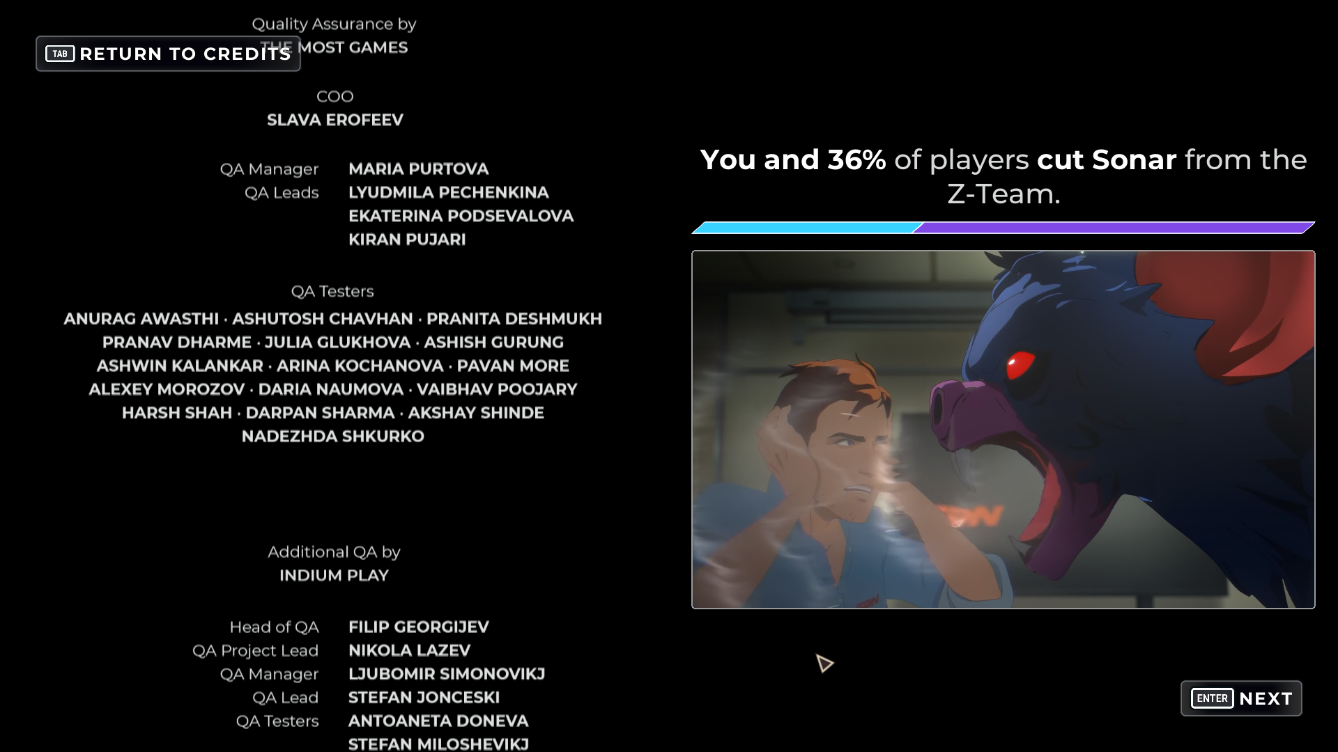 Самый трогательный момент, на мой взгляд, был в том, что, когда вы выгнали Купе вместо Сонара, он поблагодарит вас за то, что вы не исключили его из команды во время сцены в баре.