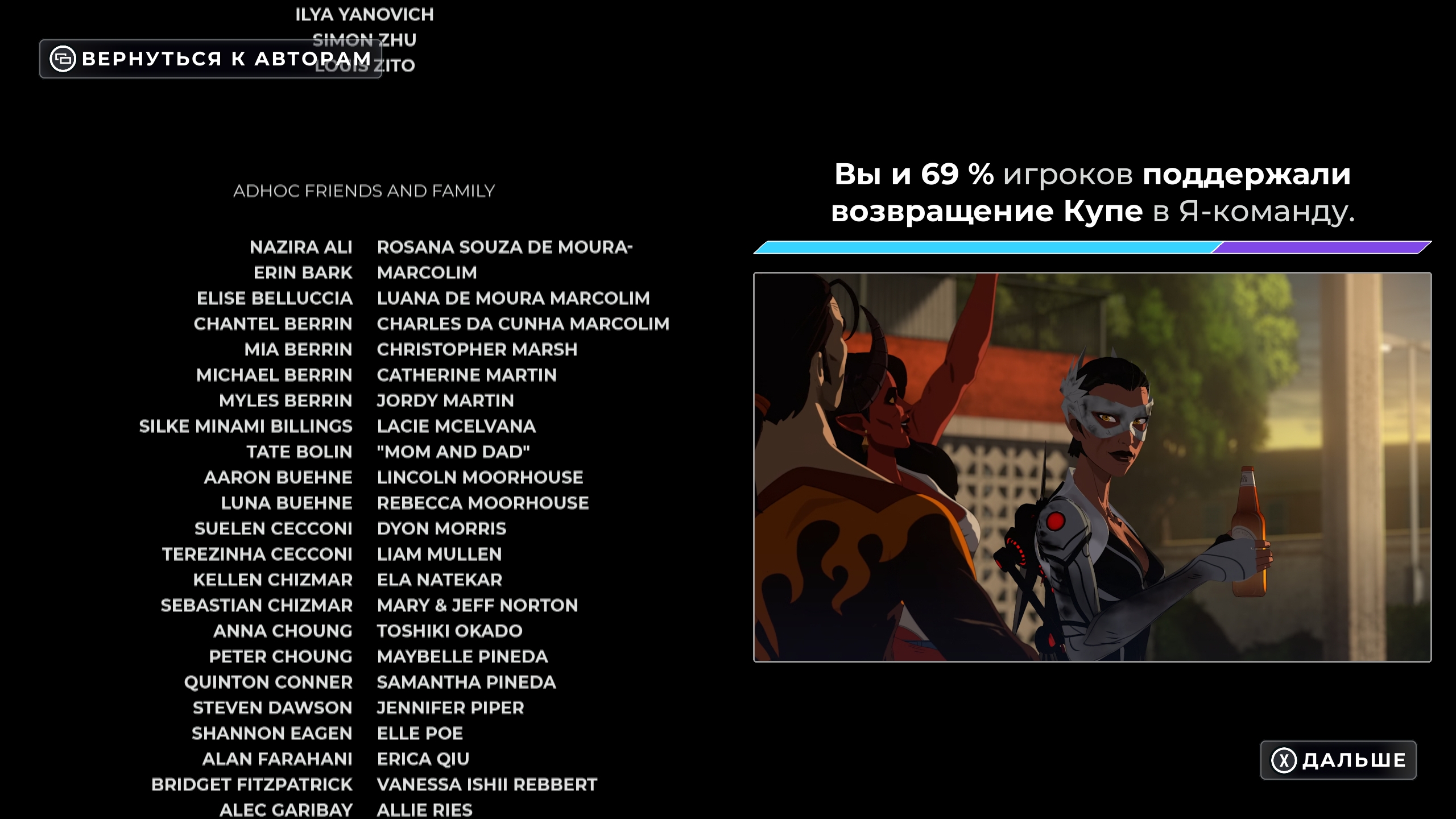 А еще я крайне сомневаюсь, что тут хоть какие-то выборы на что-то влияют. Типа если бы я не убрал из команды летучую мышь, которую озвучивает ебаный MoistCritical (я не хейтер, но слушать его голос руинит погружение), то он был бы в моей команде, а ниггерша нет? Или если бы я вместо водяного чувака выбрал депрессивного супермена, то всю игру был бы он? И если пошел бы на свидание с бимбоунитазом, а не тянкой из игры Oni, то чето было бы иначе? Не верю, прям 0% шанс. Наверняка там полторы уникальных сцены, после которых все возвращается на одни и те же рельсы. Подтвердите или опровергните? Тред не читал, если что