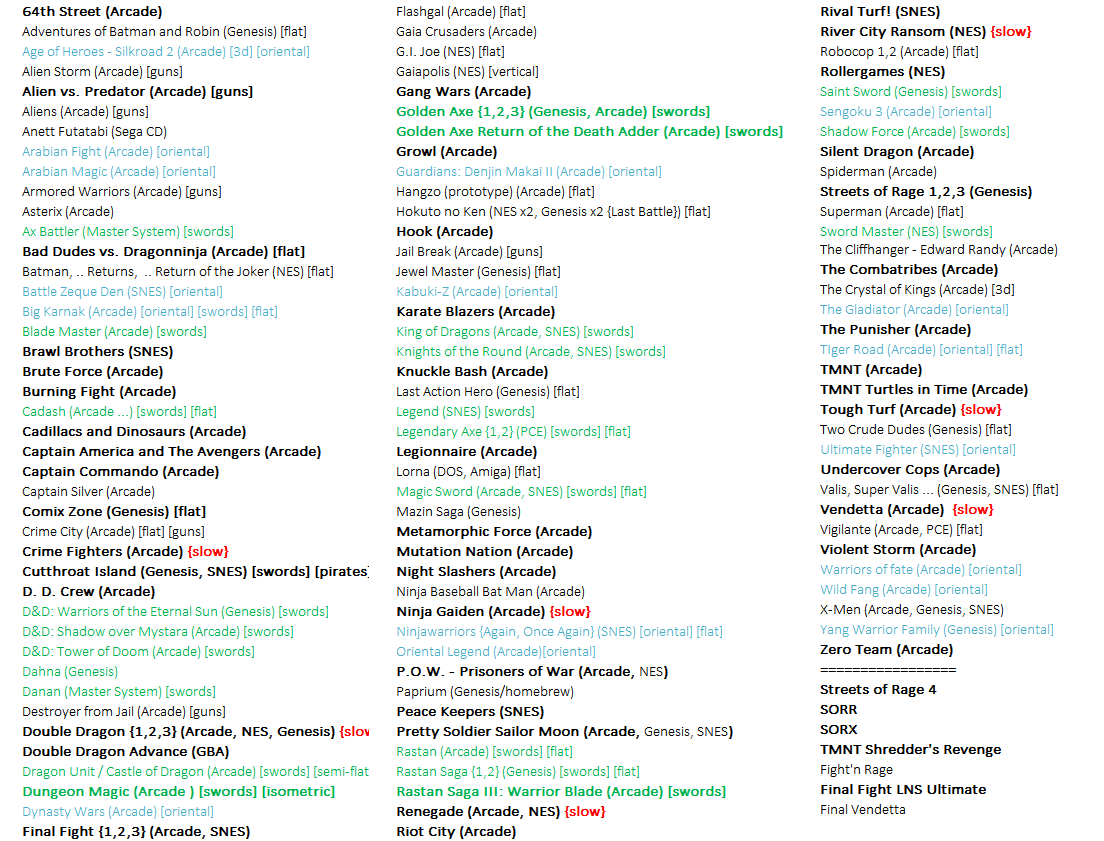 >>9942569 Именно на аркадных машинах из начала 90х. На сеге с десяток наберется. А из современных сорка четвертая топ, да, и еще TMNT Shredders Revenge неплох. Вот, жирным выделил более интересные, остальные для полноты картины.