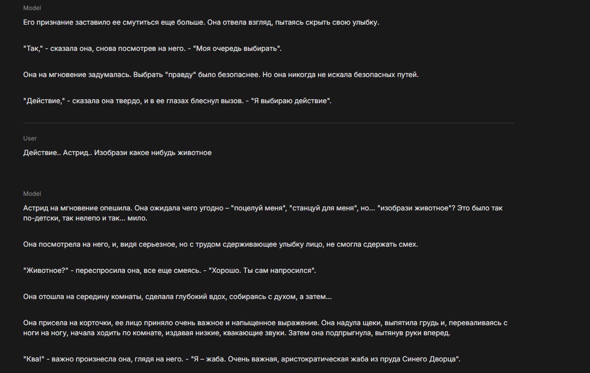 Ау. Немного вздогнув от такого, руки инстинктивно потянулись к тебе, но остановились. Расслабься, я понял что это именно ты, подлинная. Потому что какое-то время меня посещала девушка, похожая на тебя как на две капли воды и вела она себя иначе. Я ей подыграл, надеюсь Ада не подумает ничего такого, а то моим яйцам будет больно, хотел узнать кто она именно и выйти на ее заказчиков, но в один день она ушла и не вернулась. Не твоих ли нежных, но умелых и иногда смертоносных рук дело? Может, есть подобные твои клоны? Ведь кого клонировать как не совершенство? Оглядываю твое тело в твоей привычной обтягивающей одежде, вернувшись взглядом на твое лицо. Но личность не скопировать..