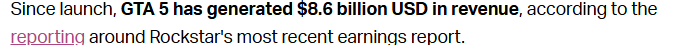 >>9966391 (OP) >Now, it's been revealed that GTA 5 is in fact the most profitable entertainment product of all time, with overall sales that now apparently surpass $6 billion overall. As reported by Market Watch, this based around an incredible 90 million copies of the game being sold.