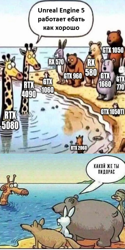 >Но только разница в том что у зелёнки апскейлер лучше и >обновляется он даже на 2000 серии, а не как у амуде, которые >почти 8 лет проебывали и не добавляли аппаратную поддержку. Чуть-чуть это не лучше чувак, почти нахуй разницы нет. >Теперь обладатели 7000карт и ниже сосут амдшную бибу Чушок. Со своими познаниями в красных картах можешь далеко и нахуй отправиться. Есть FSR4 под линукс по дефолту в протоне, запускается командой, даже на веге нахуй. Для сринды есть оптискейлер. Проблемы нет. Проблемы придумываешь ты сам. Мозги совсем от потреблядства поехали. >Каким калом сейчас бы не была нвидия, амд ещё каловее. Нвидия это каловее амуды. Будем терпеть скам зелёных, но только б красных не покупать - весь девиз фанатиков.