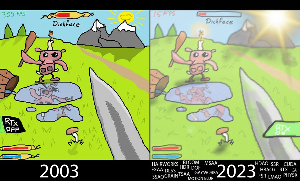 >>9924825 Нет, ты действительно принёс просто показать скрины с использованием фср4. Ну ахуенно, иди лучи ещё запусти на процессоре. Ну а хуле, технически же можно заставить процессор считать лучи? - Можно. Похуй что там фпс 0, но оно же запускается блять. Тут тож самое. Нахуй эту аппаратную поддержку, мы блять врубим фср4 программно угандонив фпс и в итоге получим картинку от апскейлера с фпсом натива(если не ниже). Ахуенно.