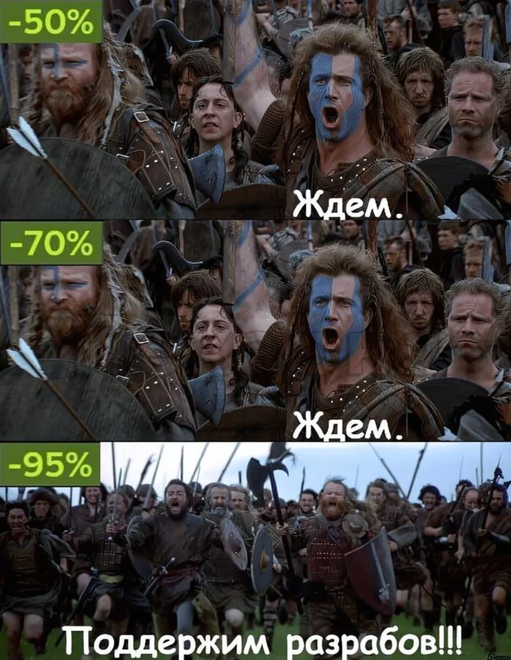 Не Дед Лайт Бист (потому что Дед Лайт 2 был не очень хорошей игрой) Не Диспатч (потому что маленькая скидка, а контента немного - это не игра, а интерактивный фильм, кинцо) Не Хроники (нет скидки, да и контента в АоЕ2 так много, что я состарюсь, когда дойду до хроник - у меня ж полное издание) Не Болл х Пит (потому что... у меня ещё Hall of Torments не пройден) Не Сталкер 2 (серьёзно, статью за измену могут пришить, да и не хочу на мове играть, да и вдруг игра с русских ip нагружает карту так, чтобы она сгорела) Не Дед ЛРайзинг Делюкс Ремастер (потому что цензура, нет панцушотов, да и... вроде как игра короткая, что мой член, ещё и с таймером) Не Арк Рейдерс (потому что геймплей луп однообразный и не мой жанр)
