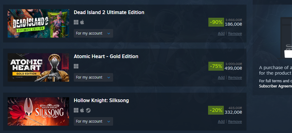 >>10005774 Уже напарывался на эту скидку. Если на ру акк хотите гифтом взять, то бандл не загифтуется, придется по одной покупать, имейте ввиду ананасы.