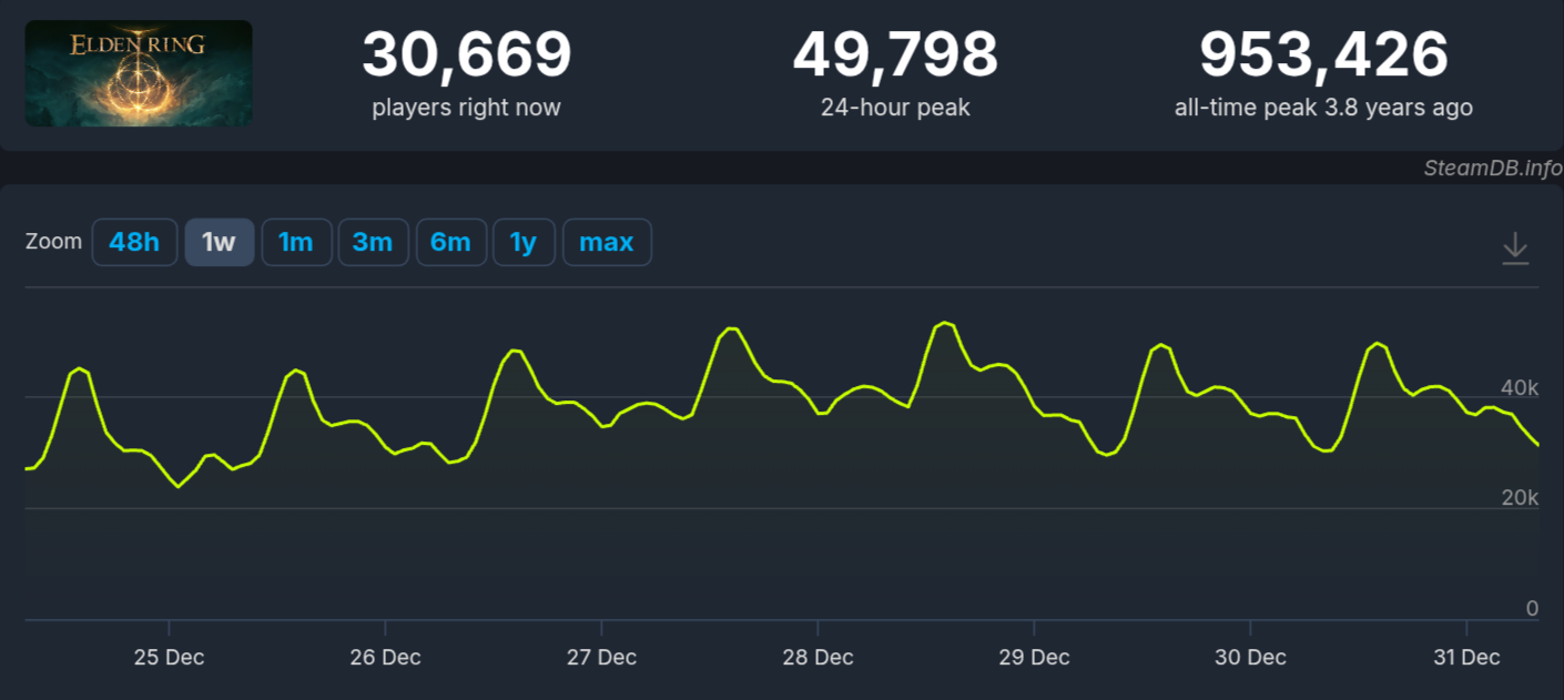 >>10025269 > Ты давай без субъективщины, объективно в чём лучшесть заключается А это я тебе объективно и говорю, это многие еще в 22 году говорили, хоть обзор от ихбт глянь тот же, что в элден ринге мир дает чувство исследования, что там за непримичательныи углом всегда можешь найти что нибудь или новую локу или босса или данжик, собственно онлайн игры это самый объективный покахатель, что в сингл игру 22 года играют больше чем в игру этого года